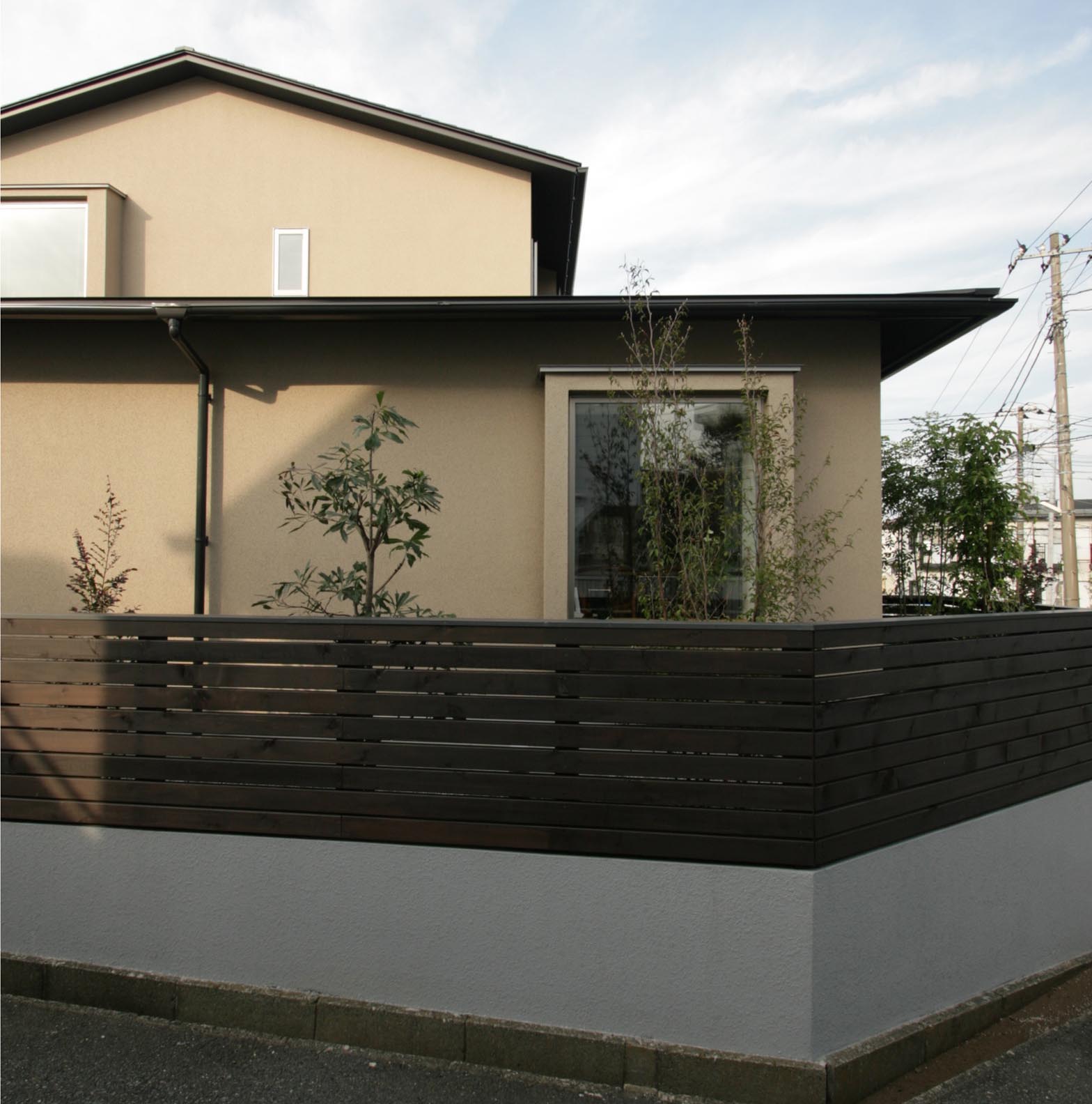 不定形な敷地の形を活かした間取りにすることで、緑が身近に感じられる居心地のよい窓辺ができあがりました。LDKの天井は、空間をゆったりと包み込むようなかたちで、安堵感があります。